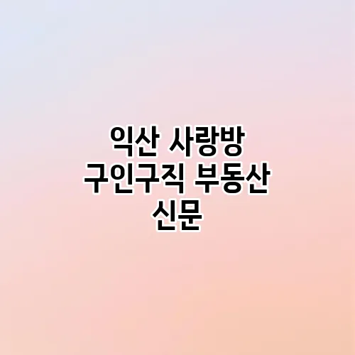 익산 사랑방 구인구직 부동산 신문에 대해 알아보는 시간을 가져보겠습니다. 이 글에서는 익산 지역의 구인구직 정보와 부동산 정보를 종합적으로 다루며, 여러분이 필요로 하는 다양한 정보를 제공합니다. 특히 익산 사랑방을 중심으로 직업 검색과 지역 구인게시판에 대한 내용을 심도 있게 탐구해 보겠습니다. 이제 본격적으로 이야기를 시작해 볼까요?